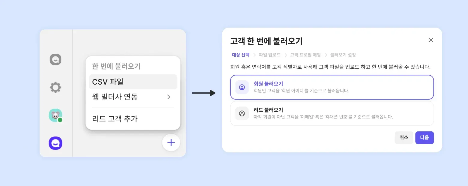 라이언: 채널톡에서 고객 정보를 처리하는 구조가 굉장히 복잡해서, 이 작업을 할 때 각 단계마다 필요한 작업을 1~2종으로 제한하고 모든 상황을 두 가지로 나눠서 플로우를 설계했어요. 중간 과정의 시각화에도 신경을 많이 썼고, 저는 잘 풀었다고 생각을 했는데요. 근데 막상 릴리즈해보니 생각지 못한 부분에서 어려워하시는 점들이 너무 많아서 ‘내가 아직 지식의 저주에 걸려있구나’ 하는 걸 실감했죠.